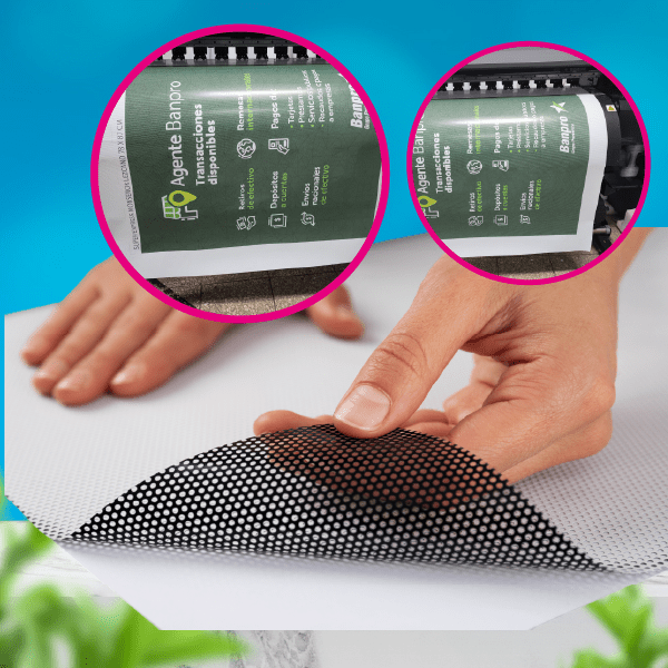Impresión de viniles microperforados para vidrios de vehículos o vitrinas, permiten visibilidad interior y promoción exterior con colores duraderos.